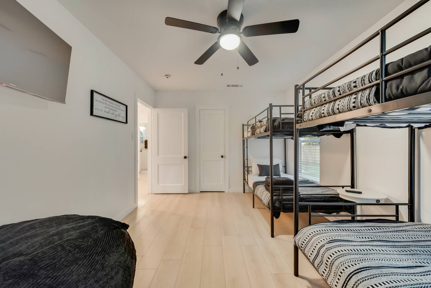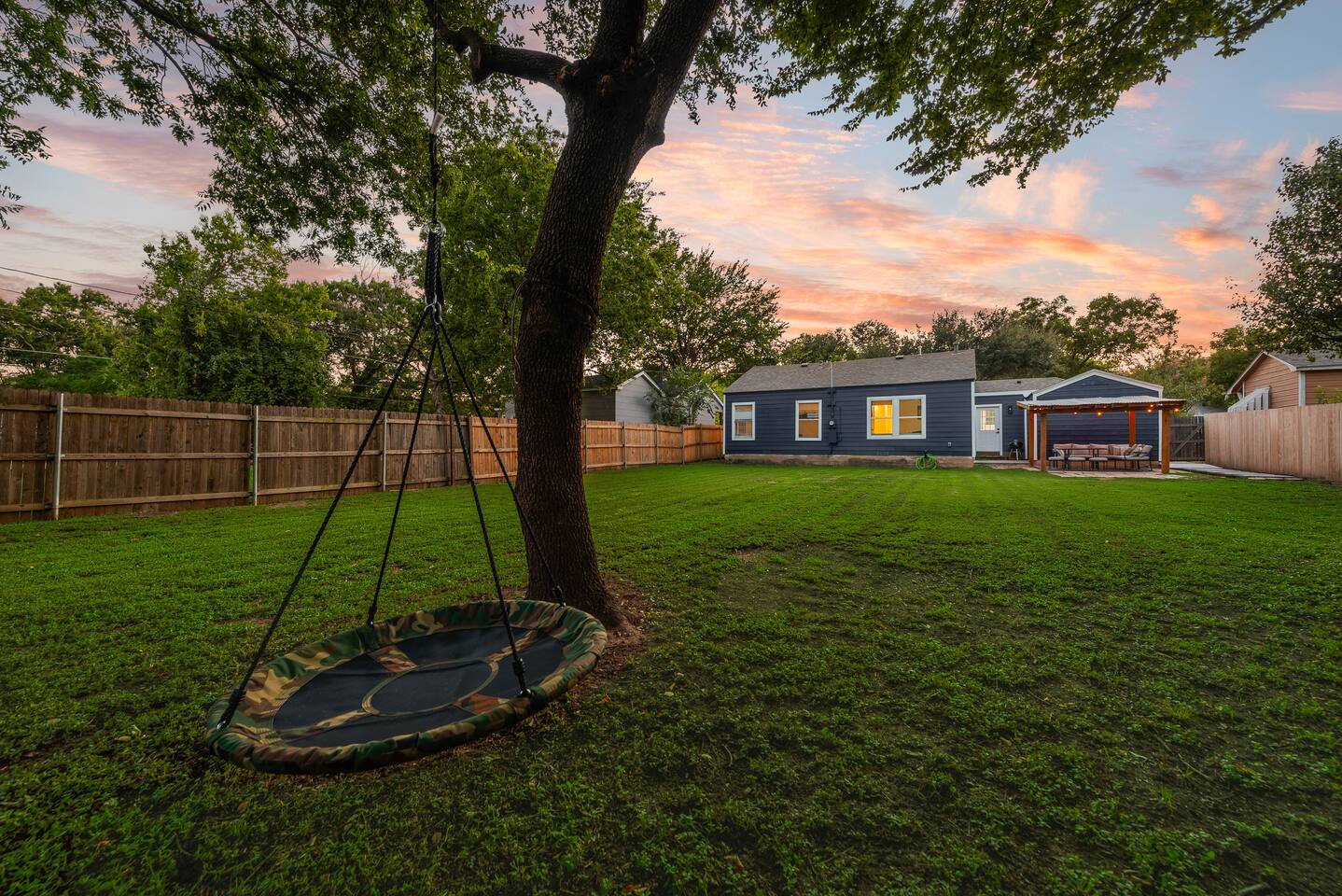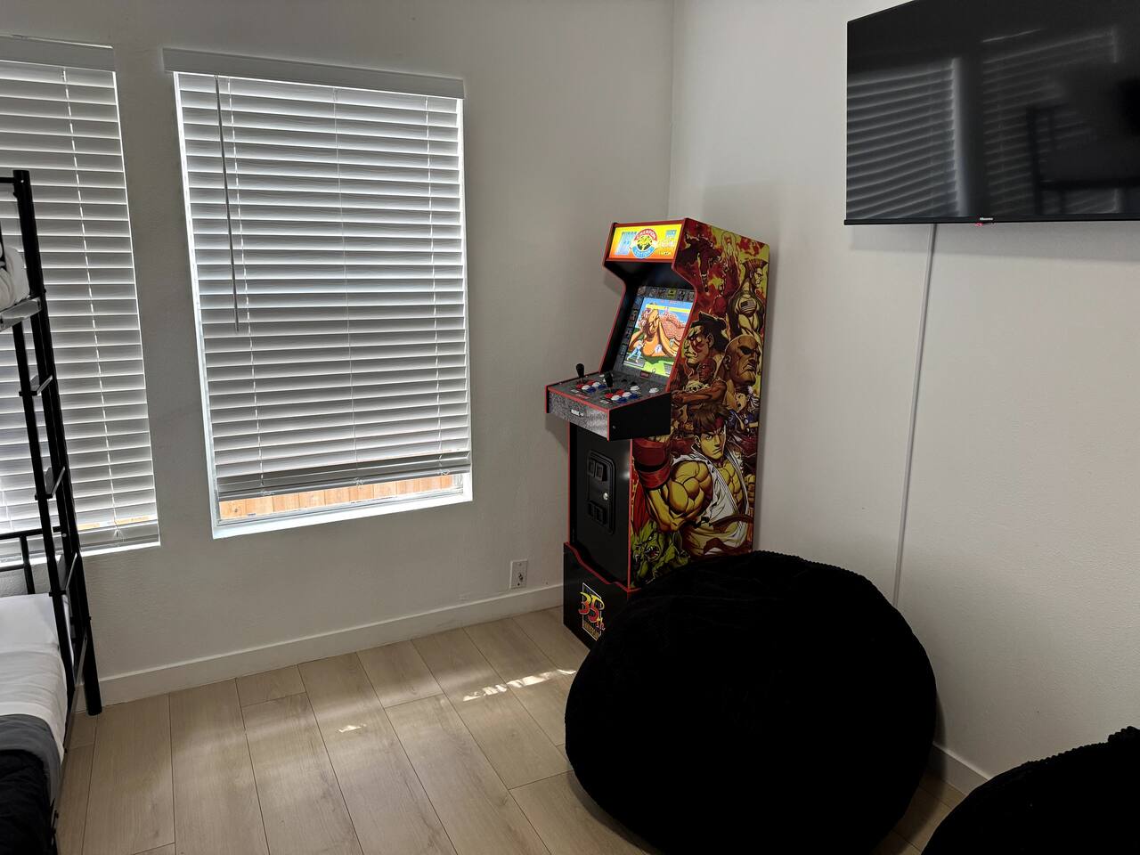 Home Highlights: 🛏️ 3 Bedrooms, 2 Bathrooms – Perfect for families or groups visiting Arlington Bedrooms: Primary Bedroom: King bed with high-quality mattress Wardrobe and Roku Smart TV Private ensuite bathroom with shower Second Bedroom: King bed with high-quality mattress Closet and Roku Smart TV Third Bedroom (Bunk Room): Two bunk beds (4 twin beds total) Closet, Roku Smart TV, and Arcade game — a favorite for kids! Bathrooms: Primary Bathroom: Private ensuite with shower Second Bathroom: Hallway access between king and bunk rooms; features a tub/shower combo Living & Dining Areas: Spacious living room with two large leather couches and Roku Smart TV — great for movies or the big game Dining table comfortably seats six Kitchen: Fully equipped with essentials for cooking and dining (see amenities list for full details) Outdoor Space: Large backyard with Fire Pit, dining area, grill, and tree swing Plenty of open space for kids or adults to play Location: 🌟 Unbeatable proximity – Just a short walk to AT&T Stadium, Globe Life Field, and Arlington’s Entertainment District