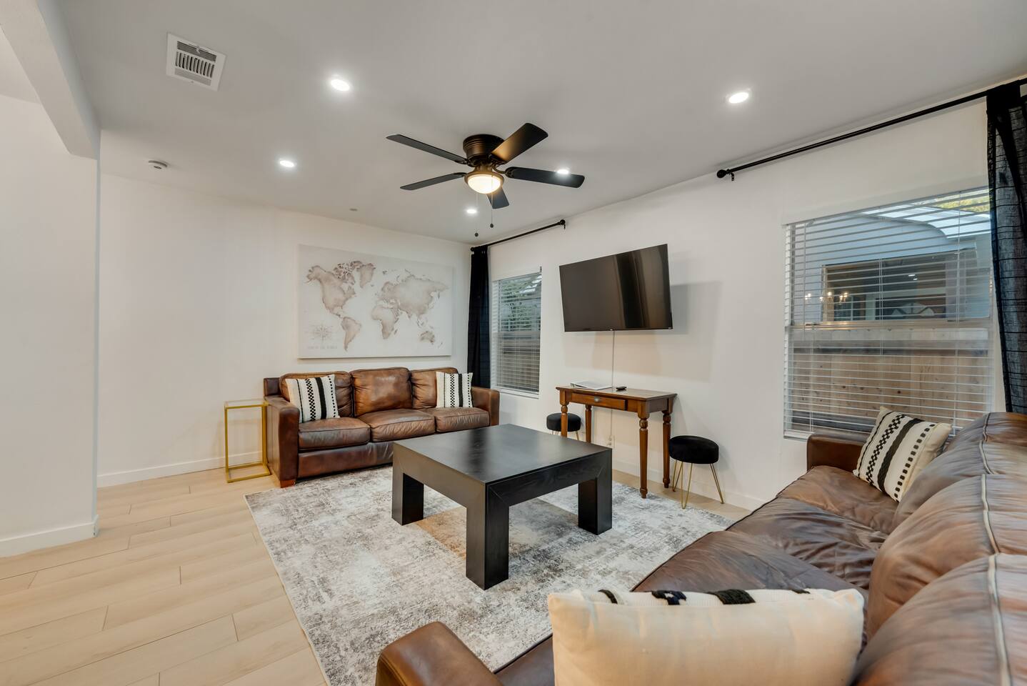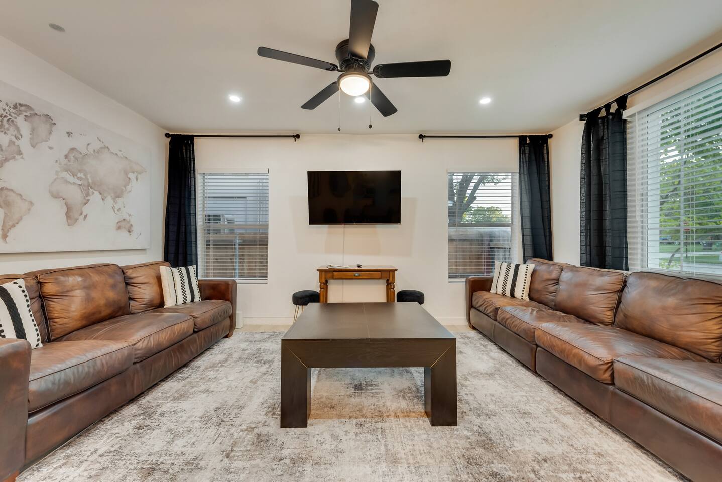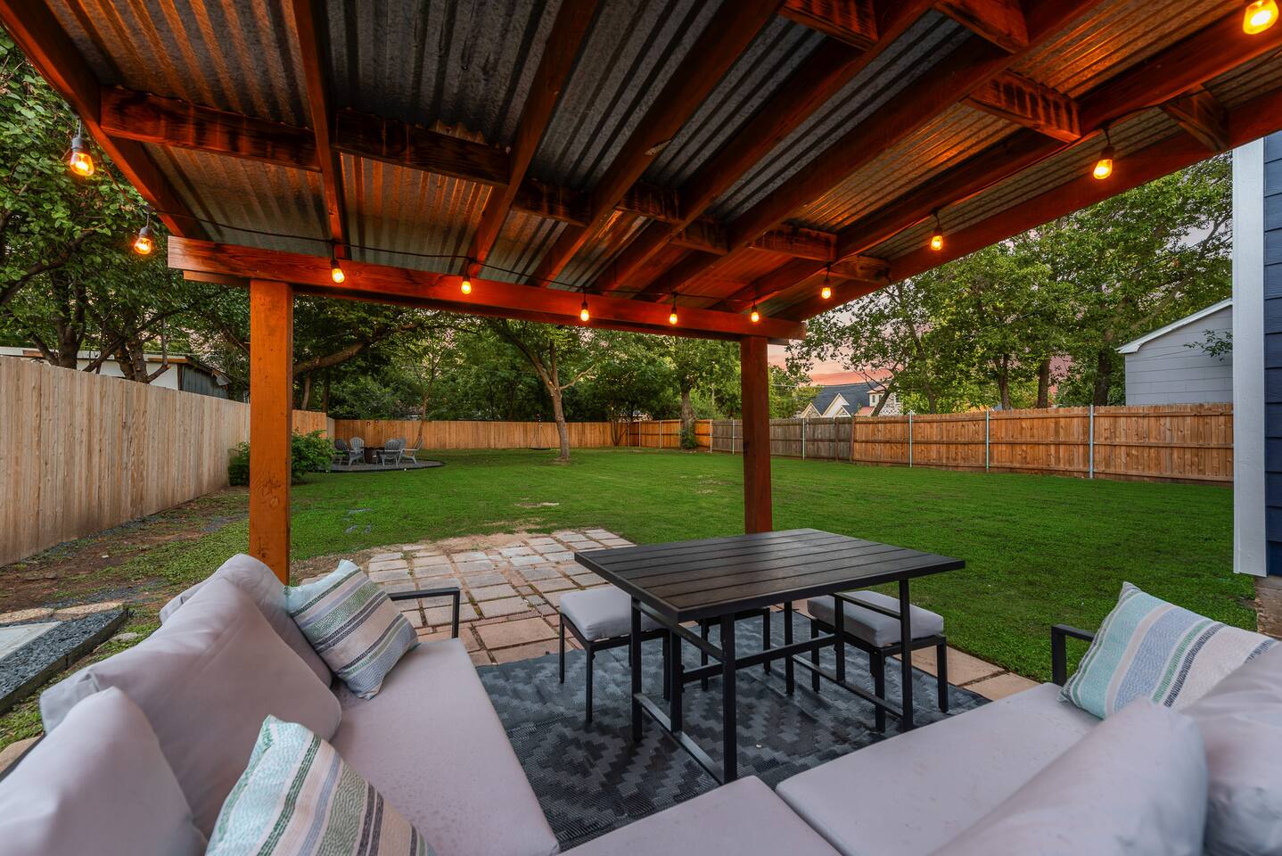 Home Highlights: 🛏️ 3 Bedrooms, 2 Bathrooms – Perfect for families or groups visiting Arlington Bedrooms: Primary Bedroom: King bed with high-quality mattress Wardrobe and Roku Smart TV Private ensuite bathroom with shower Second Bedroom: King bed with high-quality mattress Closet and Roku Smart TV Third Bedroom (Bunk Room): Two bunk beds (4 twin beds total) Closet, Roku Smart TV, and Arcade game — a favorite for kids! Bathrooms: Primary Bathroom: Private ensuite with shower Second Bathroom: Hallway access between king and bunk rooms; features a tub/shower combo Living & Dining Areas: Spacious living room with two large leather couches and Roku Smart TV — great for movies or the big game Dining table comfortably seats six Kitchen: Fully equipped with essentials for cooking and dining (see amenities list for full details) Outdoor Space: Large backyard with Fire Pit, dining area, grill, and tree swing Plenty of open space for kids or adults to play Location: 🌟 Unbeatable proximity – Just a short walk to AT&T Stadium, Globe Life Field, and Arlington’s Entertainment District